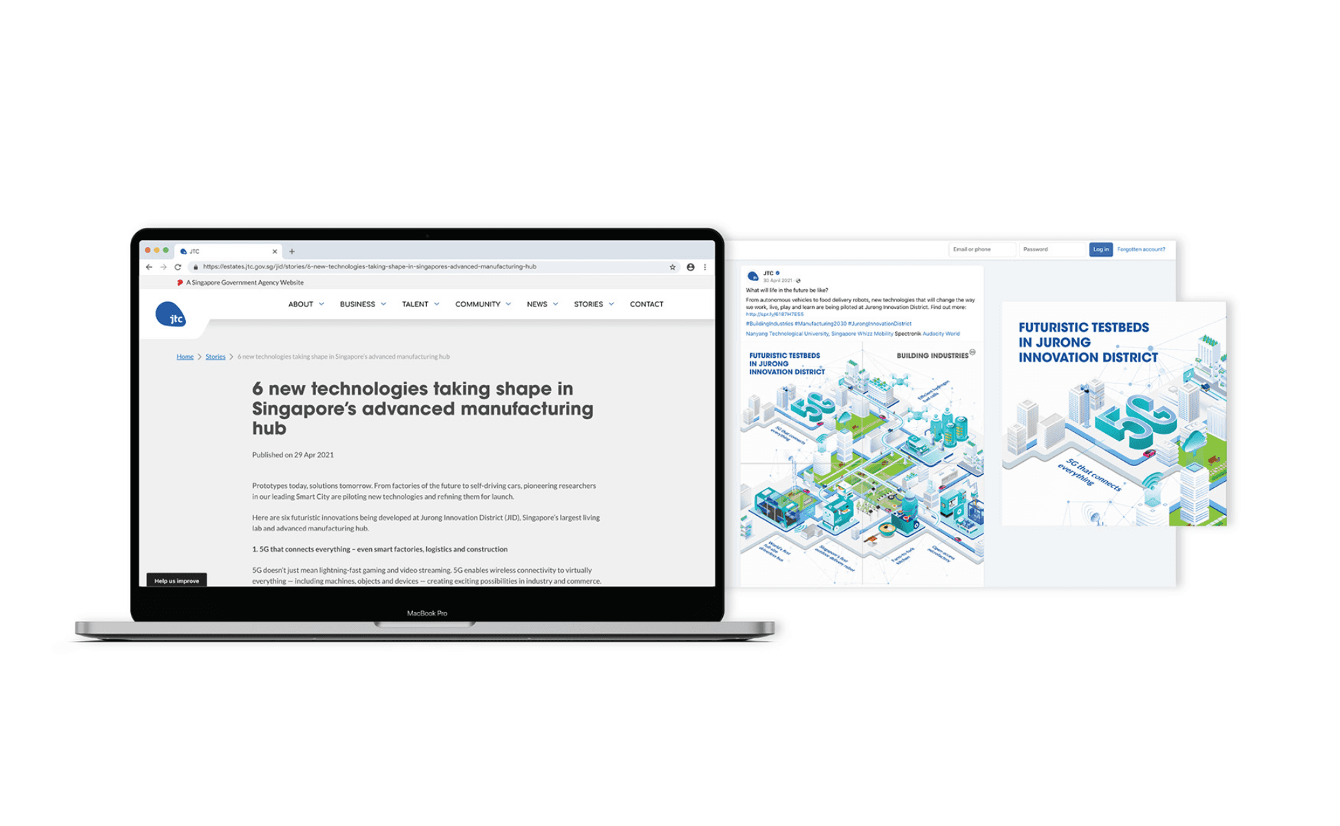 As the Head of CX and design lead, I orchestrated the full digital transformation of JTC’s online experience, integrating service, content, branding, and data strategy into a unified customer journey. Key actions: Strategic Research & Prioritization Conducted segmented qualitative research with industrial tenants, local SMEs, and global investors, mapping digital needs, behaviors, and pain points. Prioritized core user journeys based on impact (e.g. property discovery, lease renewals, service requests, community engagement). Ran prototype testing loops to validate navigation, content clarity, and service pathways across low- and high-digital literacy users. End-to-End Digital Redesign Integrated property management systems, tenant services, facilities booking, and community content into a single, modular portal. Overhauled information architecture, navigation, and content strategy to reflect how tenants think, not how JTC was structured. Developed mobile-first interface patterns optimized for on-the-go business users and estate managers. Automated high-volume touchpoints (e.g. FAQs, service ticketing, lease information) to reduce pressure on call centers. Brand Repositioning & Experience Identity Rebranded key signature estates (e.g. Punggol Digital District, Jurong Innovation District, Sungei Kadut Eco-District) with new narratives, visuals, and storytelling structures. Evolved JTC’s tone and content toward a “friendly, pro-business” brand personality, reflecting approachability and partnership. Delivered a cohesive, modern digital language for the JTC parent brand and its property ecosystem.